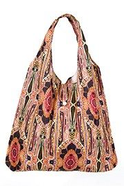Стильная сумочка с ярким принтом и плотными тканевыми ручками подойдет к любому наряду. Сумочка складывается и застегивается на кнопку, поэтому если вы решите взять её в путешествие, она совсем не займет места.