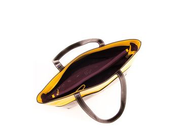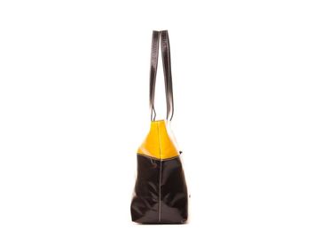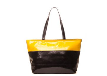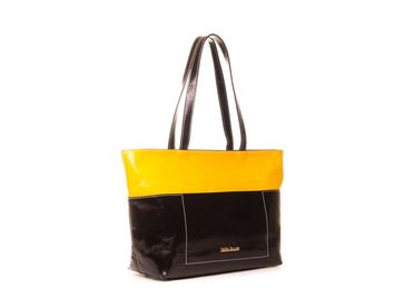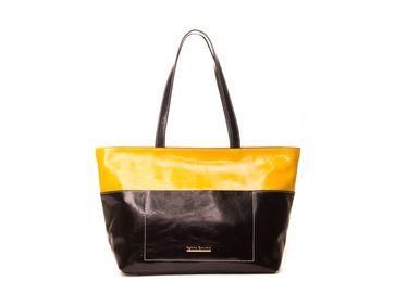 Стильная сумка из черной гладкой кожи с желтыми вставками. Длинные ручки позволяют носить сумку через плечо.