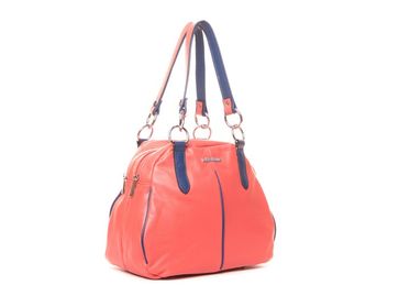 - Кожаная коралловая сумка-трапеция с двумя отделениями по выгодной цене 3 375 р. руб.;