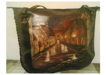 Сумка женская из кожи высокого качества с росписью. Красивый и элегантный подарок. Ручная работа None