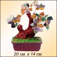 Дерево "Счастья" - дерево с полудрагоценными камешками вместо листочков – символ растущего процветания и богатства. Согласно направлению Фэн-Шуй, если поместить подобное дерево на востоке Вашей квартиры, это будет способствовать хорошему здоровью и