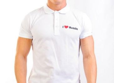 - Футболка-поло I love Russia белая в каталоге Сувениры в Москве;