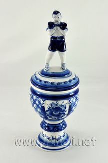 Закажите Кубок Гиревику. Гжельский фарфор. арт. 2718 у компании Гжель, гжельский фарфор, интернет – магазин подарков и сувениров. в Москве на портале Alloy: