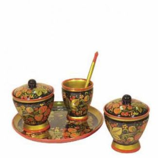 Закажите Набор для стола Земляничка. Хохлома у компании "Souvenirus.com" - магазин русских сувениров и подарков в Москве на портале Alloy: