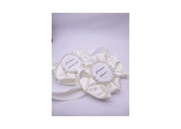 Комплект бутоньерок Gilliann Sharon BTN014 Комплект бутоньерок для свидетеля и свидетельницы, выполнены из белого атласа, декорированы жемчугом. Материал и декор:атлас, жемчуг. Размеры: любые размеры. None