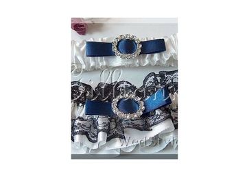 Подвязки сделаны из атласа, украшены кружевом, атласными лентами, стразами.