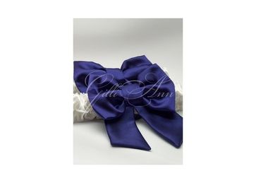 Комплект свадебных подвязок, сделанных из белого атласа. Украшены большим синим бантом ярко-синего цвета.
