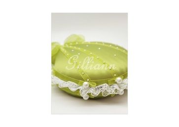 Свадебная подушечка нежно-зеленого цвета, сделанная с откидной крышечкой. Украшена кружевом и жемчугом Материалы и декор: атлас, кружево, жемчуг.