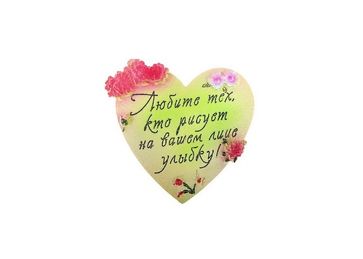 Магнит полистоун "Любите тех, кто рисует на вашем лице улыбку" STA527 Магнит в форме красочного, яркого сердца с надписью "Любите тех, кто рисует на вашем лице улыбку". Размер: 0,5х6,5х6,5 см. Материал: полистоун. None