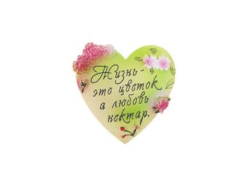 Магнит полистоун "Жизнь - это цветок" STA526 Магнит в форме красочного, яркого сердца с надписью "Жизнь - это цветок, а любовь нектар". Размер: 0,5х6,5х6,5 см. Материал: полистоун. None