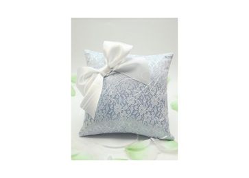 Подушечка для колец Gilliann Lace Tenderness PIL238 Подушечка Lace Tenderness сделана из голубого атласа, поверх которого натянуто белое кружево с мелким растительным рисунком. В тон к кружеву в углу расположился белый атласный бант. Оригинальная, стильная подушечка понравится тем молодоженам, которые не любят броских декоративных украшений, а предпочитают изысканную простоту и сдержанность. Материалы и декор: атлас, атласные ленты, кружево. None