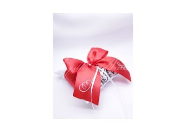 Свадебная подушечка для колец Gilliann Red Rose PIL185 Подушечка для обручальных колец - часть комплекта. Сделана из сочетания атласа двух расцветок, украшена большим ярко-красным бантом, жемчугом. Материалы и декор: атлас, атласные ленты, жемчуг. None