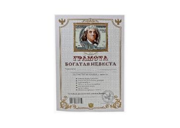 - Свадебная грамота "Богатая невеста" STA623 в каталоге Свадебные аксессуары в Москве;