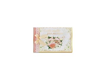 Свадебная книга пожеланий на пружинке "Стильная" STA636 Книга пожеланий в ярких тонах, украшенная кружевом и бантом. Листы собраны на пружинку. Размер: 1х22,9х15.8 см. Материал: бумага, кружево, атласная лента. None