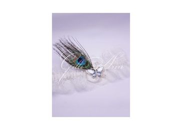 Материал и декор: кружево Шантильи, атласные ленты, декоративный элемент бабочка со стразами, перо павлина.