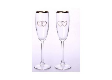 Свадебные бокалы GLS036 c золотой каймой - набор из 2 шт., 170 мл. Свадебные бокалы для шампанского с золотой каймой и стразами в форме двух сердец Материал: стекло, стразы. None