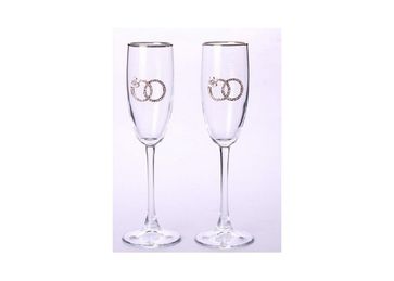 Свадебные бокалы GLS037 c золотой каймой - набор из 2 шт., 170 мл. Свадебные бокалы для шампанского с золотой каймой и стразами в форме обручальных колец Материал: стекло, стразы. None