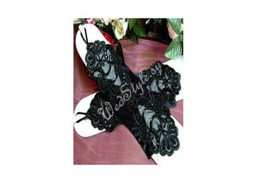 Свадебные митенки для невесты MIT020 Длина: чуть ниже локтя (elbow). Материал: атлас-стрейч, лайкра. Отделка: кружево, жемчуг, пайетки. Цвет: черный. None
