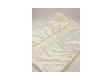 Свадебный рушник Gilliann Blessing RNS003 Родительское благословение - один из важнейших моментов свадебного торжества. Хлеб-соль на рушнике - знак родительского согласия, этот ритуал не потерял своей актуальности и сейчас, когда молодые люди предпочитают во всем действовать самостоятельно. Рушник Blessing сделан из атласа цвета айвори, украшен прозрачным тонким кружевом, тесьмой. Материалы и декор: атлас, кружево, тесьма. Размеры: любые. None