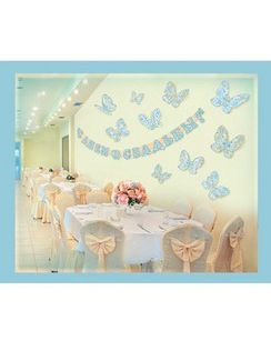 Оформительский набор "С днем свадьбы" (GKIM 29.148.00) K010510 Набор украшений для интерьера на скотче. Выполнен из дизайнерской бумаги, декорирован цветными блестками в лаке. Набор состоит из 10 бабочек. Нежно-голубые украшения украсят банкетный зал или сказочную детскую комнату. Узорные бабочки помогут создать волшебную атмосферу в любом помещении. В комплект входит двусторонний скотч. Мин. заказ 500 руб.