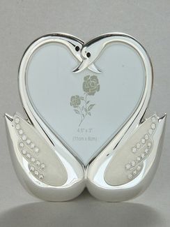Серебристая фоторамка "Лебединое сердце" (Sl-134797) K010573