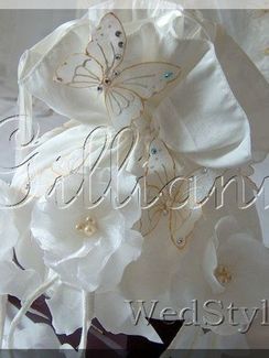 Свадебная сумочка Gilliann Батерфляй BAG281 Маленькая и изящная сумочка в стиле мадам Помпадур. Декорирована цветами, лианами и бабочками из органзы, стразами Сваровски, искусственным жемчугом, контуры по ткани. Только ручки-утяжки из атласных лент. Жёсткое дно сумочки не даёт ей терять форму. Используется свадебная тафта. Материалы и декор: тафта, органза, атласные ленты, искусственный жемчуг, стразы Сваровски, контуры по ткани. Размеры: любые. None
