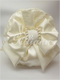 Свадебная сумочка Gilliann Natalie BAG257 Маленькая и изящная сумочка выполнена из атласа цвета слоновой кости, декоративная вставка с красивой и тонкой вышивкой, бант, украшенный жемчугом, придают неповторимое очарование