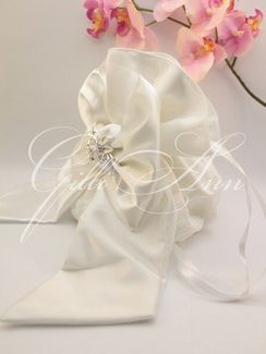 Свадебная сумочка Gilliann Orchids Flower BAG258 Атласная сумочка белого цвета в стиле мадам Помпадур. По центру сумочки сделан большой атласный бант. Вся сумочка расшита бусинами и чешским бисером. Отдельно ручки и отдельно ручки-утяжки. Все ручки сделаны из атласных лент. Жёсткое дно сумочки не даёт ей терять форму. Материалы и декор: свадебный атлас, атласные ленты, чешский бисер, бусины. Размеры: любые. None