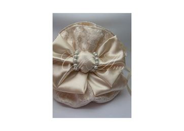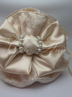 Атласная сумочка в стиле мадам Помпадур. Сделана из атласа кремового цвета, украшена большим бантом, отделана кружевом и жемчугом. Необыкновенно изящная, подчеркивает тонкий вкус. Отдельно ручки и отдельно ручки-утяжки. Все ручки сделаны из атласных лент. Жёсткое дно сумочки не даёт ей терять форму.
