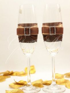 Свадебные бокалы со стразами Сваровски Gilliann Chocco Beauty GLS085 - набор из 2 шт. Свадебные бокалы для шампанского из коллекции Chocco Beauty. Прозрачное стекло украшено атласной полосой шоколадного цвета и перетянуто пряжкой прямоугольной формы, создавая эффект драпировки. Блеск стразов и пузырьков шампанского создадут великолепную игру света. Бокалы станут не только приятным воспоминанием о свадьбе, но и отличным украшением интерьера. Материал: богемское стекло, атласные ленты, стразы Сваровски None