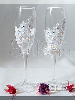 Материалы и декор: стеклянные бокалы, стразы Сваровски, речной жемчуг.