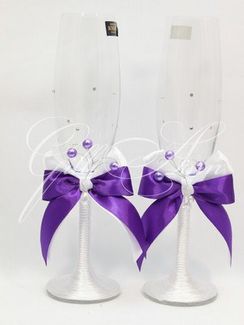 Свадебные фужеры для шампанского Gilliann Amore Violet GLS150 Материалы и декор: стекло, атласная лента, декоративные элементы. None