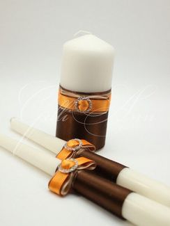 Свадебные свечи Gilliann Chocco Beauty Orange CAN064 Свечи из коллекции Chocco Beauty Orange станут достойным украшением трогательной церемонии передачи домашнего очага от родителей детям. Мерцающее пламя зажженной свечи будет переливаться с глянцевым блеском атласной ленты оранжевого цвета. А в небольших стразах Сваровски отблески огня будут играть причудливым светом. Материалы и декор: свечи, атлас, атласные ленты, стразы. None