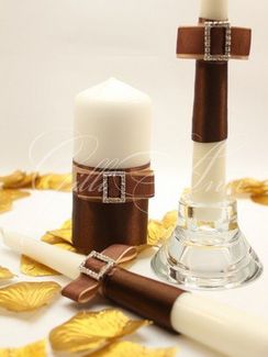Свечи домашний очаг Chocco Beauty CAN057 Свечи из коллекции Chocco Beauty. Перетянуты широкой полосой атласа сочного шоколадного цвета, которая на белоснежном воске выделяется ярким контрастом. Украшены тонкой лентой светло-коричневого цвета и атласным бантом с прямоугольной пряжкой, усыпанной стразами. Очень оригинальный комплект, который украсит своим видом не только ритуал зажжения домашнего очага, но и станет частью декора банкетного зала. Толстая свеча будет стоять весь вечер на столе перед молодоженами, символизируя настрой предстоящей жизни "Вся жизнь в шоколаде!". Материалы и декор: свечи, атлас, атласные ленты, стразы. None