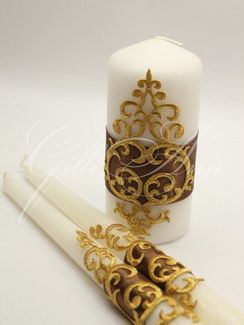 Свечи домашний очаг Chocolate Queen CAN054 Свечи из коллекции Chocolate Queen. Сделаны из белого воска, украшены атласной лентой шоколадного цвета. В центре - витиеватая вышивка желтого цвета с вензелями. Стильный гармоничный декор - одно из главных отличий этих свечей. Они украсят волнующую церемонию зажжения домашнего очага, когда родители молодоженов передают тепло своего дома в новый. Наполненные любовью, они будут охранять дом от невзгод, наполняя уютом, согласием, благополучием. Прекрасно подойдут в качестве подарка. Материалы и декор: свечи, атласные ленты, вышивка. None