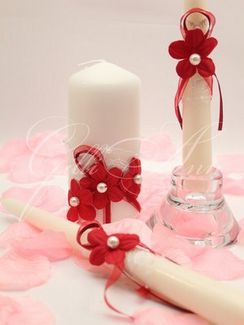 Свечи домашний очаг Redrosso CAN060 Красный цвет - символ любви, понятно желание молодоженов подчеркнуть силу своих чувств в мельчайших деталях свадебного торжества. Свечи из коллекции Redrosso украшены тонким прозрачным кружевом, по которому словно рассыпался жемчуг. Ярким акцентом на белом фоне выделяются ярко-красные цветы с жемчужинами посередине, на тонких свечах - по одному цветку, на толстой - три цветка. Цветы декорированы узкими длинными лентами из атласа и органзы. Материалы и декор: свечи, органза, кружево, атласные ленты, декоративные элементы, жемчуг. None