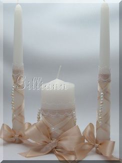 Свечи домашний очаг Gilliann Vanessa CAN030 Комплект свечей для домашнего очага, цвет айвори в сочетании с кремовым цветом или любым другим цветом по вашему выбору. Свечи добавят изюминку и украсят вашу свадьбу. Материалы и декор: свечи, искусственный жемчуг, ленты, кружево. None