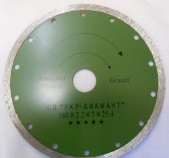 - Диск алмазный Ф 180Х22 гладкий Укрдиамант по выгодной цене 873 р. руб.;