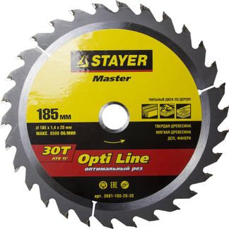 - Диск пильный STAYER MASTER "OPTI-Line" по дереву, 185х20мм, 30Т по выгодной цене 424 р. руб.;