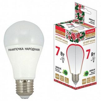 - Лампа светодиодная НЛ-LED-A60-7 Вт-230 В-3000 К-Е27, (58х109 мм² , Народная | код. SQ0340-0111 | TDM по выгодной цене 862 р. руб.;