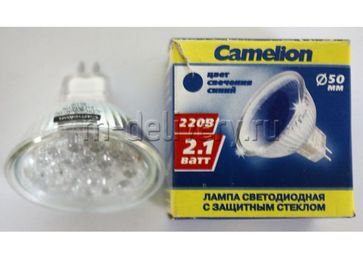 - Лампа светодиодная с защитным стеклом Camelion G5.3 2.1W Синяя в каталоге Светодиодные лампы в Москве;
