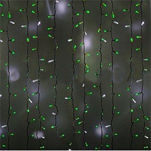 Светодиодная гирлянда Занавес, длина 2 м, высота 1.5 м, 230 В, мерцание, IP65, 360 LED, цвет диодов зеленый, провод белый, соединяемая, б/п в комплекте None