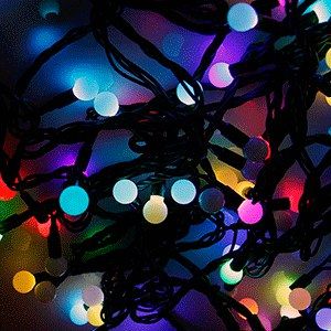 Светодиодная гирлянда Мультишарики, диаметр шариков 13 мм, длина 20 м, 230 В, свечение динамика, IP65, 200 LED, цвет диодов RGB, провод черный, соединяемая, б/п в комплекте None