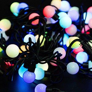 Светодиодная гирлянда Мультишарики, диаметр шариков 23 мм, длина 10 м, 230 В, свечение динамика, IP65, 80 LED, цвет диодов RGB, провод Каучук черный, соединяемая, б/п в комплекте None
