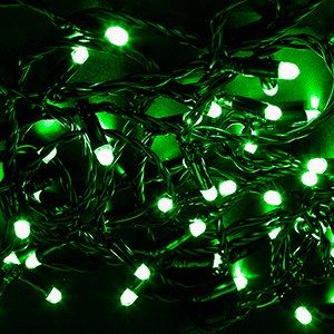Светодиодная гирлянда Нить, длина 10 м, 24 В, свечение постоянное, IP65, 100 LED, цвет диодов зеленый, провод черный, соединяемая, без б/п None