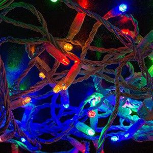 Светодиодная гирлянда Нить, длина 10 м, 230 В, свечение постоянное, IP65, 100 LED, цвет диодов мульти, провод белый, соединяемая, без б/п None