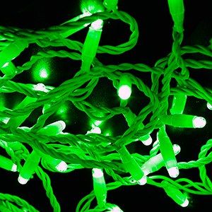 Светодиодная гирлянда Нить, длина 10 м, 24 В, мерцание, IP65, 100 LED, цвет диодов зеленый, провод белый, соединяемая, без б/п None