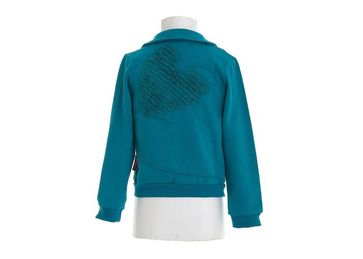 Оригинальный бирюзовый пиджак, утеплённый с внутренней стороны начёсом. От классической модели этот пиджак взял отложной воротник и два кармана, но его неповторимость создают асимметричная молния и декоративное сердце на спине. Размер: 3. Материал: 80% хлопок, 20% полиестер. Производитель: Испания. Цвет: бирюзовый. None Есть доставка. Доставка: 300.0RUR