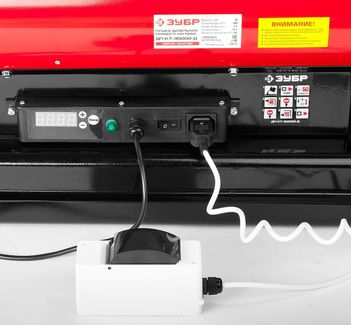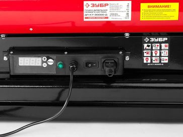 Пушка ЗУБР "МАСТЕР" дизельная тепловая, 220В, 30,0кВт, 400 м.куб час, 18,5л, 2,5кг ч, дисплей, подкл. внешнего термостата