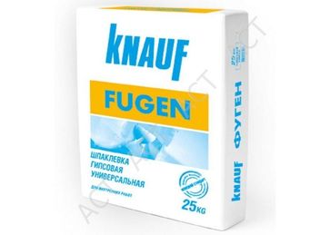 Шпаклевка «Фуген» (Fugen) «Кнауф» (Knauf) изготовлена на основе гипса с полимерными добавками, применяется для внутренних работ. Шпаклевка Фуген Кнауф 25 кг (40)